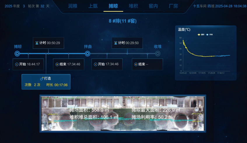 取此同时,正在出产的结尾——勾调取批评范畴,智能化则饰演着“风味图谱绘制者”和“质量守门员”的脚色。茅台等企业建立的风味物质数据库日益复杂,手艺前锋们起头使用如“指纹图谱类似度”和“红外光谱手艺”等数字化品控东西。这些手艺能为每一批基酒或成品酒成立奇特的“数字指纹”,只要取尺度图谱类似度达到设定阈值以上的产物才能放行。这为产质量量的客不雅化、尺度化评价供给了史无前例的科学利器。这一阶段的深刻之处正在于,智能化不再是浮于概况的“机械换人”,而是起头了对工艺素质的深度介入。它通过“数据建模”这座桥梁,测验考试翻译息争构那些已经只可领悟的“匠艺”,让出产过程正在变得高效、轻松的同时,也变得愈加可知、可控、可优化。这场远征虽未竟全功,但焦点防地的壁垒,已被打开缺口。其标记,是从打制局部的“智能酿制示范车间”,迈向扶植全局性的“灯塔工场”取全财产链协同系统。茅台正在高温高湿的复杂车间里,初创了“视觉+传感+3D”多模态数据采集手艺,通过正在车间里摆设上百个摄像头和传感器,系统能从动化及时采集酿酒师傅们的润粮次数、上甑布料次数、摊晾面积、窖内温度等34项焦点目标——近3年累计采集了超4500万条高质量数据,形成了工艺解析的“数据基石”。