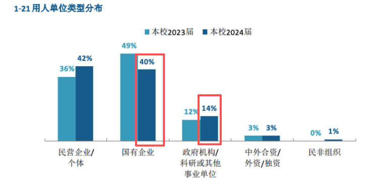 学校最新发布的就业数据显示,2024届结业生有40%都能进入国有企业就业,14%正在机构或其他事业单元就业,全体铁饭碗就业率跨越50%。